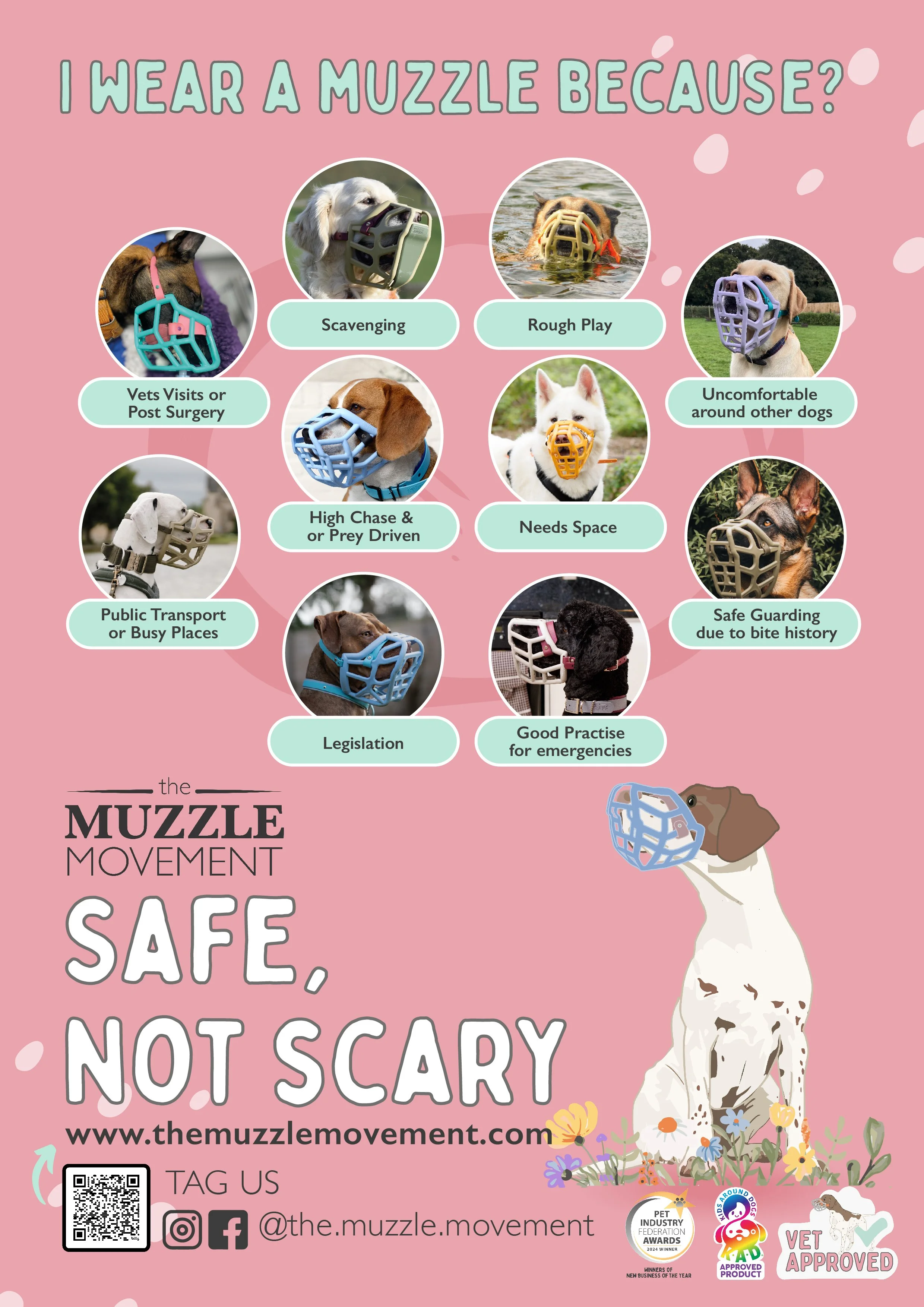 When introduced and used in a positive, humane way, muzzles can be one of the most practical tools to reduce risk and give peace of mind for pet parents! Muzzles (like a basket muzzle) should allow for eating, drinking, play - just safer! Muzzles reduce risk and stress, and can be utilized for a lot of practical uses such as: